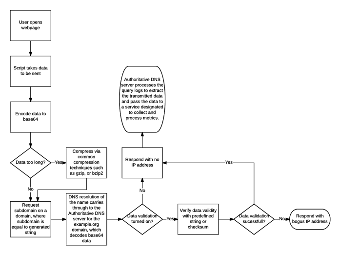 What if we were to combine these things? What if we were to somehow leverage the DNS Tunneling technique to collect web metrics. We could alternatively replace the current method or augment the current methods.